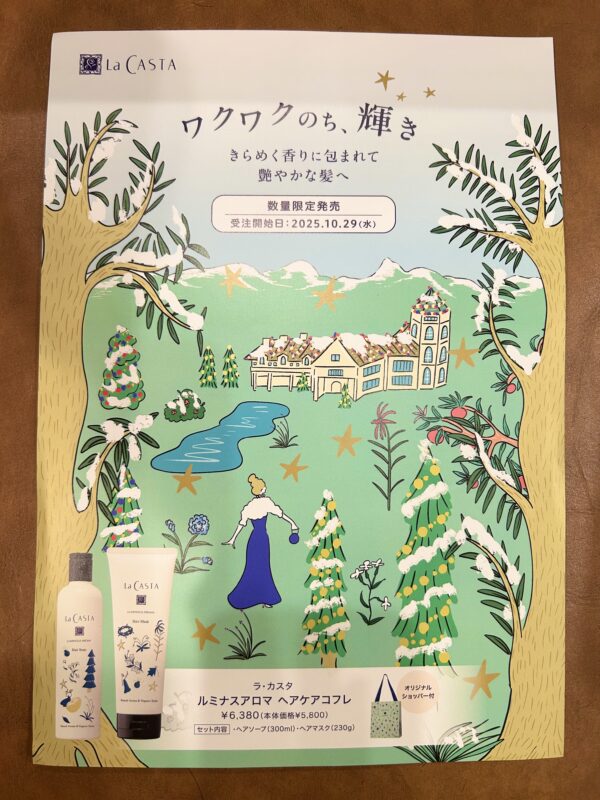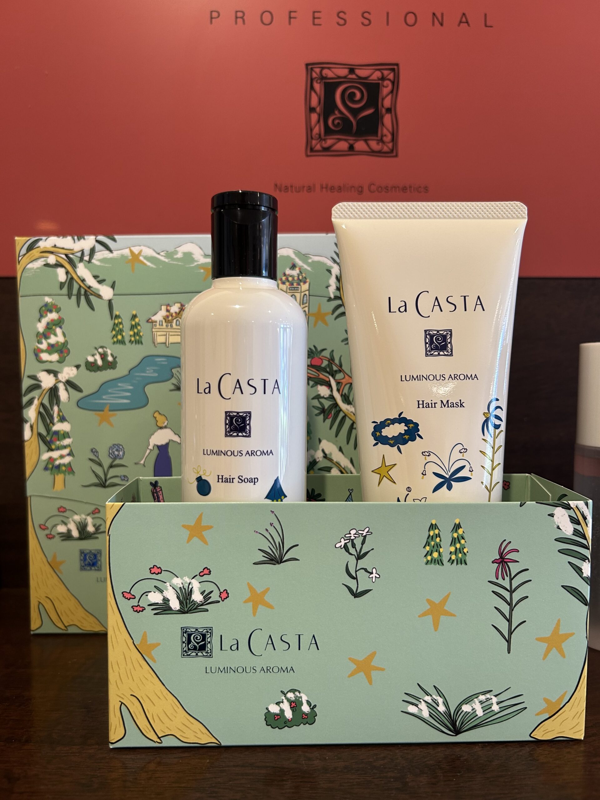 ラ カスタ ヘアケアコフレ 2025.11.13 今年も入荷しております^_^ 今年のアロマはヘアソープがシトラススイート、ヘアマスクがフローラルスイート。優しい香りに癒されます♪オリジナルの紙袋でお渡ししますので、プレゼントにもぜひ⭐︎ 〈 ルミナスアロマ ヘアケアコフレ ¥6380 〉